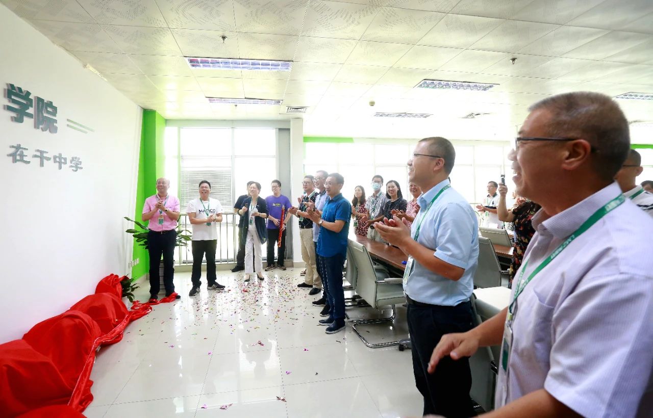 在一片热烈的掌声中,公司党委书记、董事长林钻煌(上图右)与党委副书记、总裁吴堃(上图左)共同为17C.COM学院揭牌。