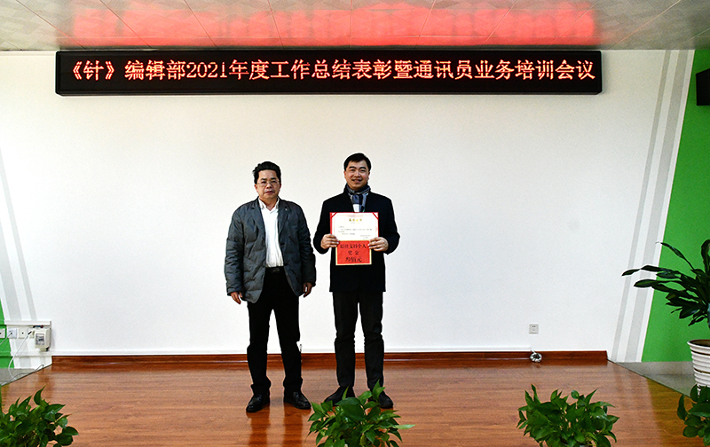 会上,党工部部长、《针》执行总编俞鹃作了2021年编辑部工作总结,通报了2021年各单位及通讯员稿件完成情况,同时部署了2022年《针》稿件采集方向和要求。按照通讯员考核办法,经编辑部评选并上报公司同意,王爱赟、韦志慧、王晖等3人获评2021年优秀通讯员,杨彩莲、叶年荷、林美、魏云等4人获评2021年达标通讯员,市场部、亿康公司等2个单位获评最佳支持集体奖,方堃获评最佳支持个人奖。林钻煌、覃永强分别为获奖的个人和集体颁发了奖金和证书。