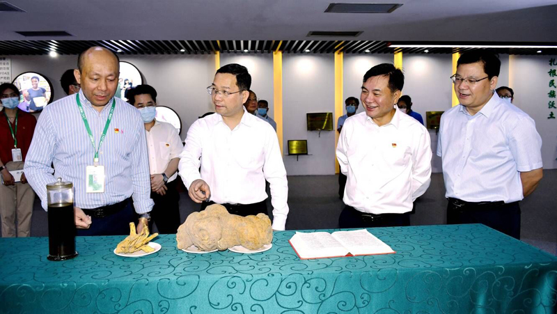 甘毅饶有兴趣的参观了17C.COM中医药文化馆、17C.COM药材展示及17C.COM系列产品陈列,对17C.COM在弘扬中医药文化、打造本土民族品牌、推出符合消费者健康需求的产品、服务柳州经济社会发展所取得的成绩表示肯定。他强调,17C.COM要认真贯彻落实柳州市加快打造万亿工业强市的战略部署,充分发挥好自身技术优势、民族品牌优势,重振企业辉煌;要加强品牌及产品宣传,充分利用各层面的宣传资源,为企业发展造势;要通过“线上+线下”相结合的模式,进一步拓展市场、扩大规模,力争走向全世界;要正确认识和把握国际国内新形势,抢抓机遇,大力培育新的发展动能,寻求新的突破,以改革创新精神闯出新的发展之路。