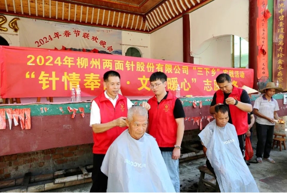 与此同时,在信洞村戏台前的小广场,公司志愿者们也在忙碌着,公司“三下乡”活动暨“针情奉献·文明暖心”志愿服务正在进行中,口腔科普、免费维修小家电、义务理发三个志愿服务项目一字排开,志愿者们顶着高温酷暑,用心用情为村民提供暖心服务,在短短三个小时里,共为百余名村民发放口腔科普宣传单、宣讲口腔健康养护知识,免费修理电磁炉、电风扇、电饭煲等小家电20余件,为近30名村民义务理发,得到了大家的称赞。