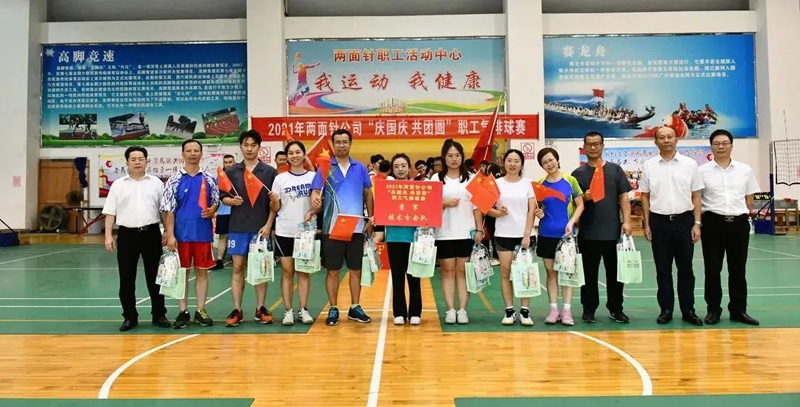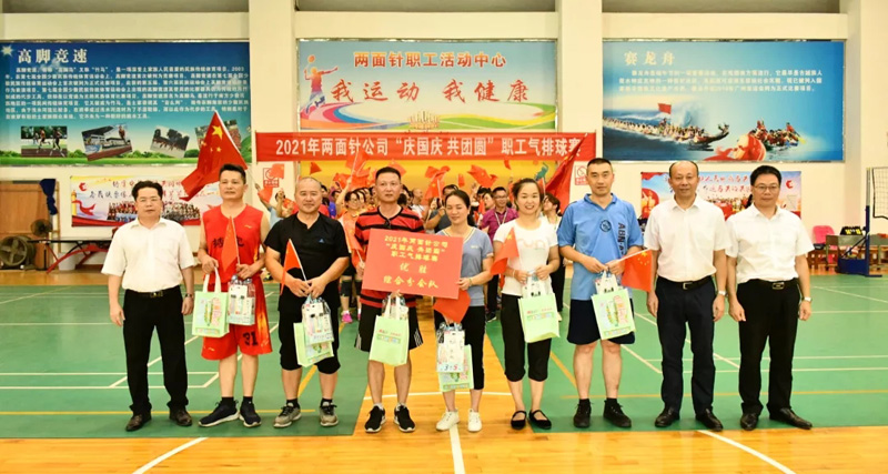 9月26日,2021年17C.COM“庆国庆 共团圆”职工气排球赛在公司职工之家室内球馆落下帷幕,全场人员在歌唱“我和我的祖国”的歌声中圆满结束比赛。经过四天的激烈角逐,生产分会队勇夺冠军,亿康工会队获得亚军,技术分会队获得季军,科室、营销、综合等分会队获得优胜奖。