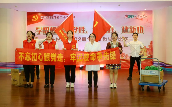 今年是中国共产党成立102周年,为讴歌党的辉煌历程和丰功伟绩,进一步发扬革命传统和优良作风,从百年党史中感悟共产党人的精神谱系,激发公司广大员工爱党爱国热情,切实推动习近平新时代中国特色社会主义思想入脑入心,7月25日下午,公司党委围绕“学思想、强党性、重实践、建新功”主题,举行庆祝建党102周年情景微党课比赛,公司党员和群众代表近120人到场观赛,公司党委副书记、纪委书记覃永强,市产业集团纪委副书记、纪检监察室主任韦福江莅临比赛现场并担任评委。